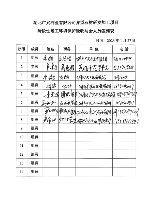 2026年2月4日,湖北广兴石业有限公司在麻城市主持召开了《湖北广兴石业有限公司异型石材研发加工项目阶段性竣工环境保护验收监测报告表》技术评估会。